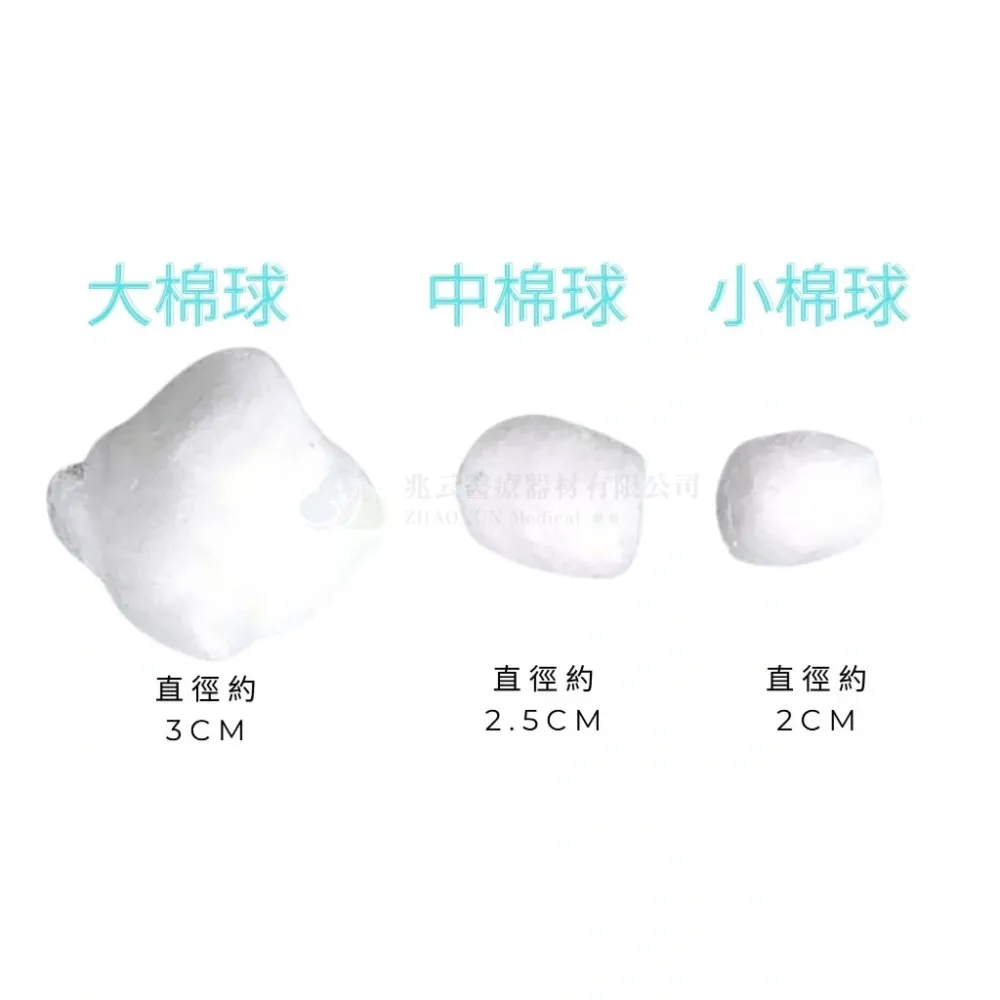 規格:大棉球(約3cm)、中棉球(約2.5cm)、小棉球(2cm)