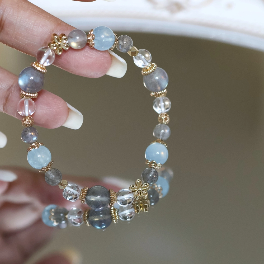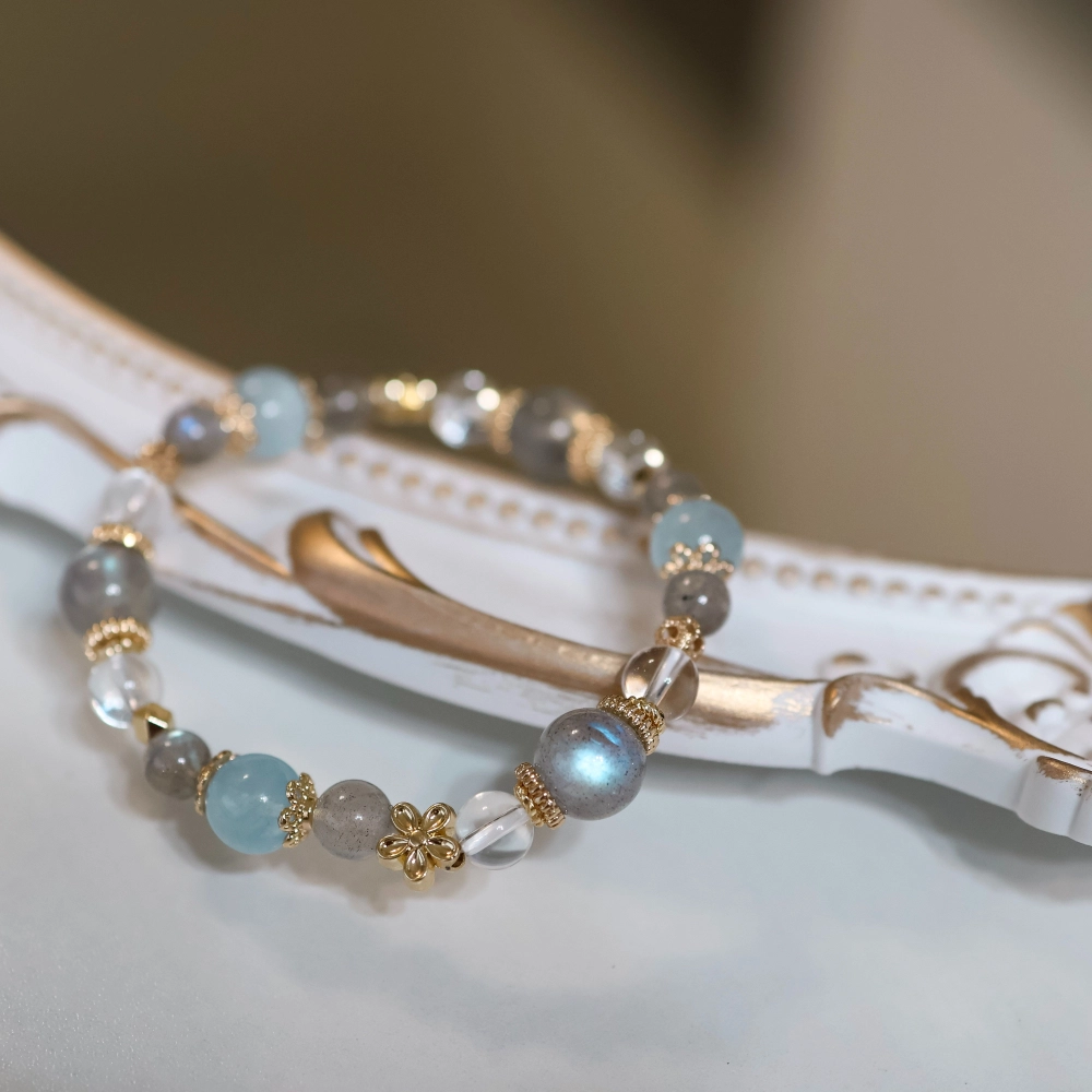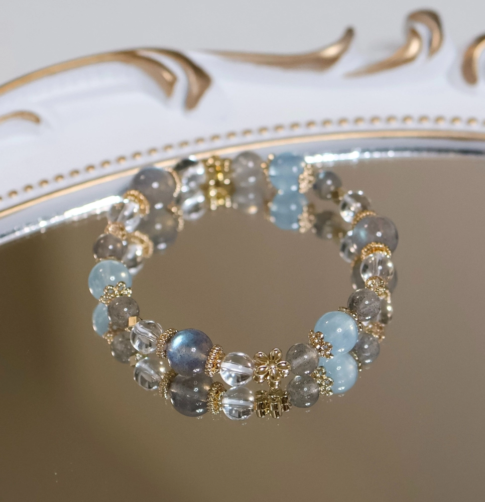 #水晶 #灰藍色的海 #拉長石 #海藍寶 #水晶手鍊 #天然水晶
