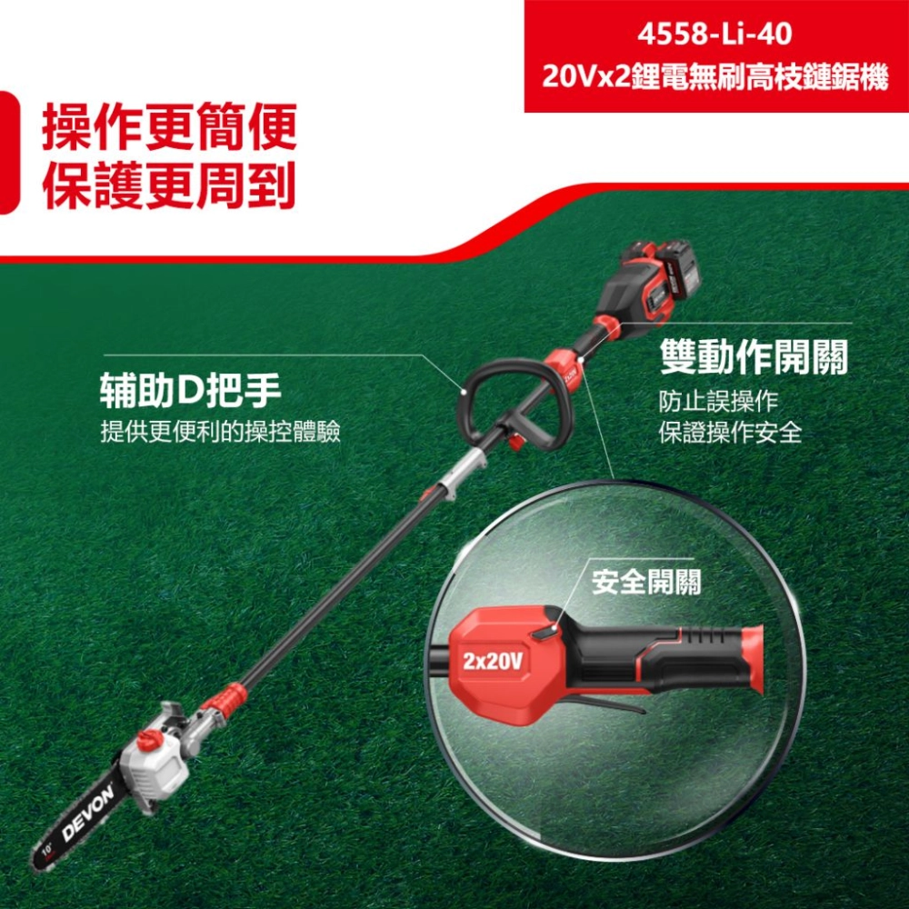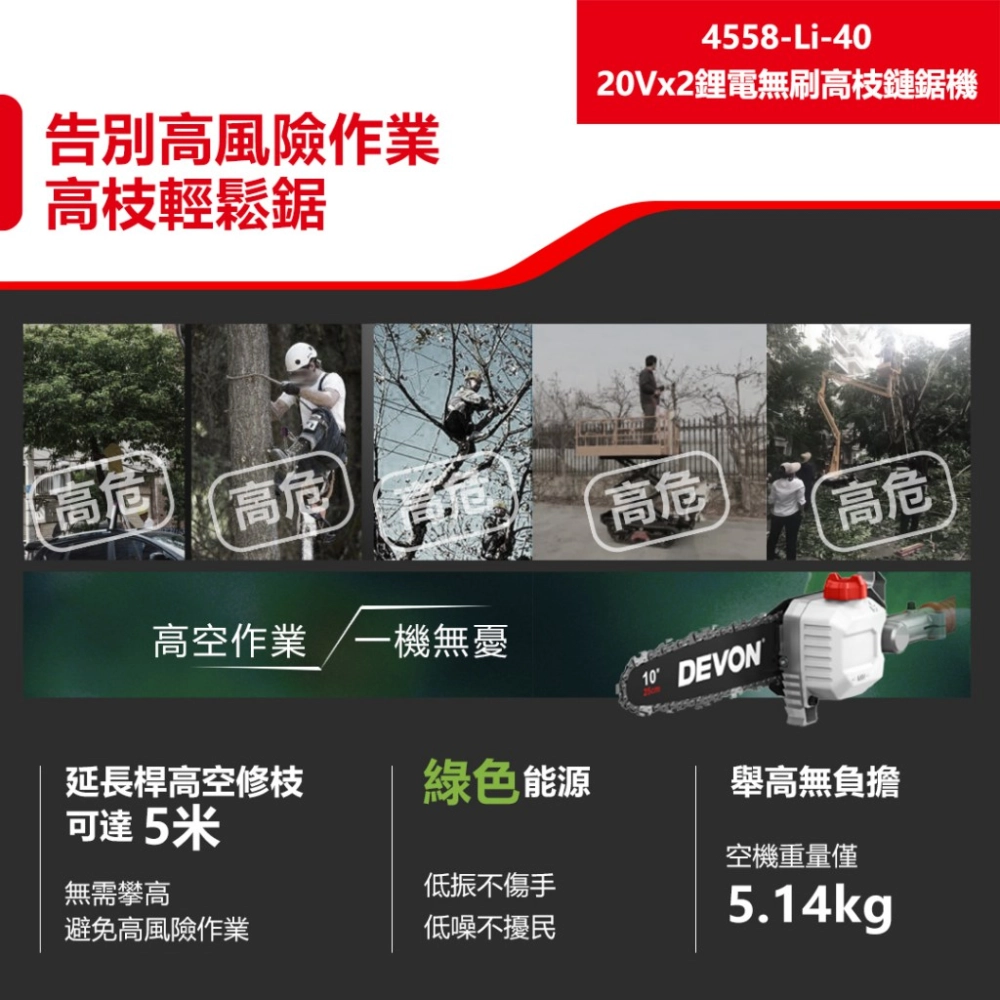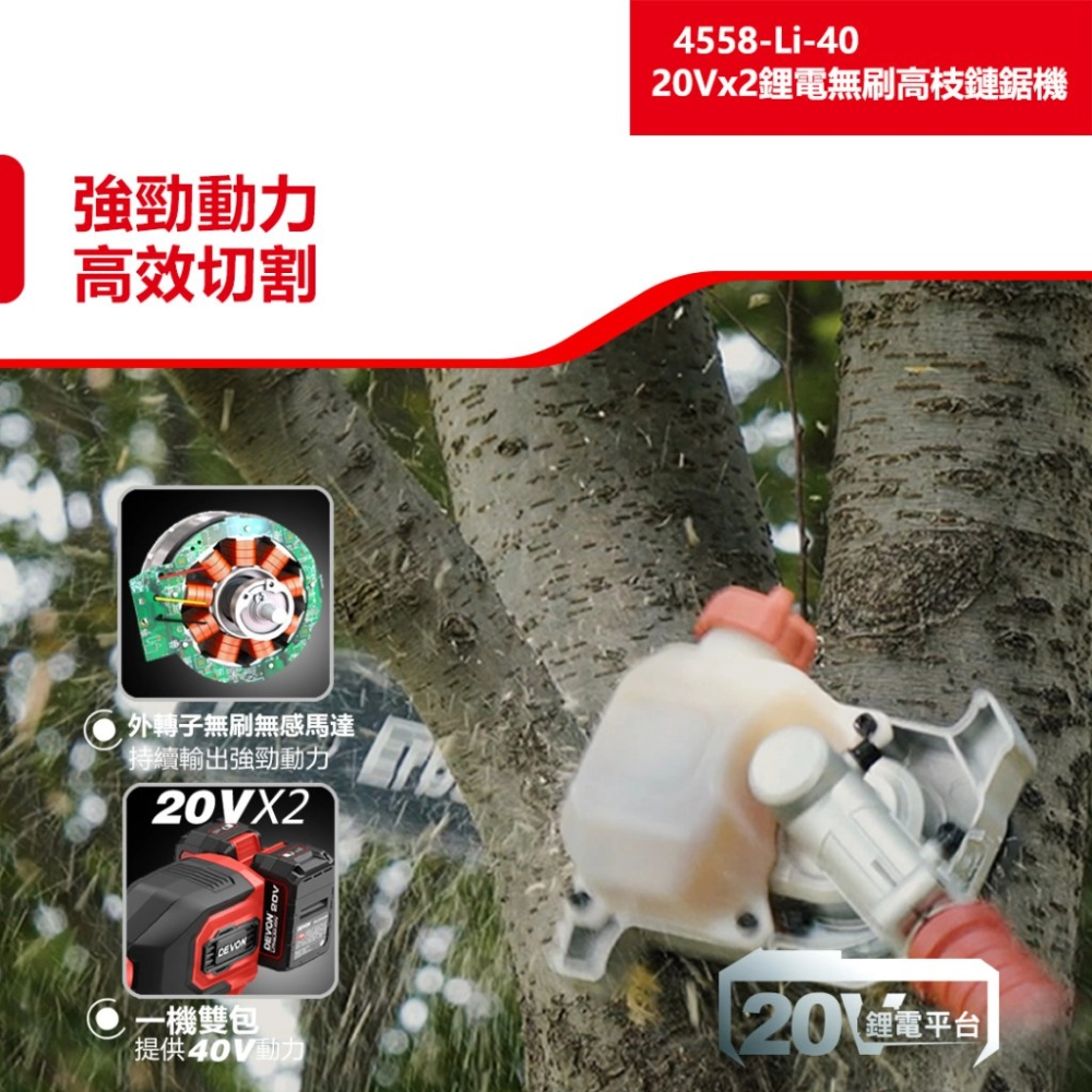 商品【飆破盤】DEVON大有 20V 充電無刷鏈鋸機 16" 園藝 修剪 木工 樹木