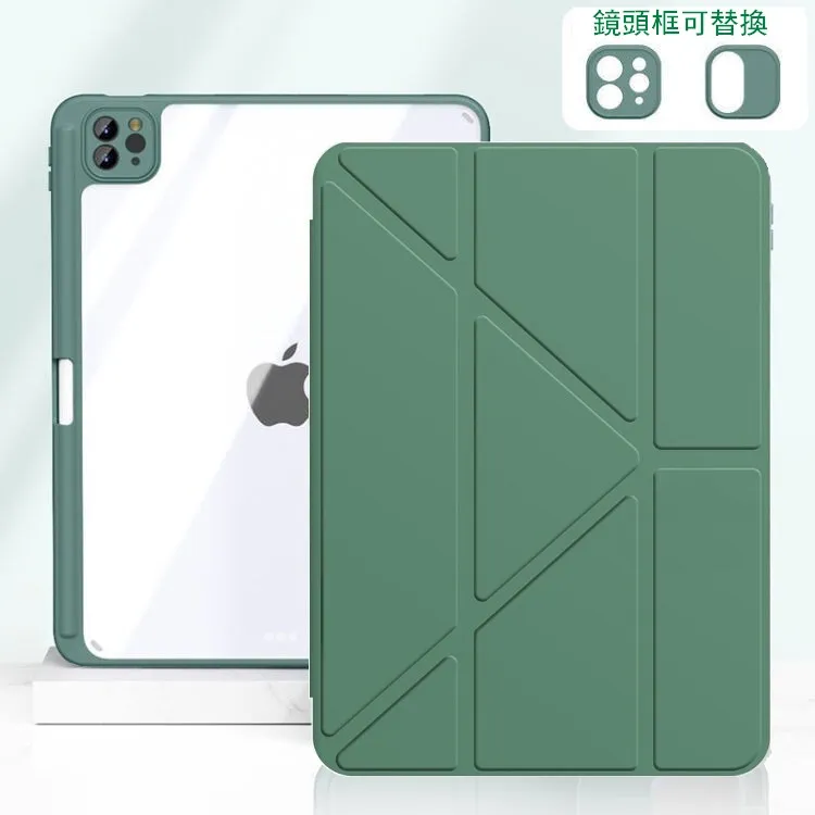 • 綠-IPAD PRO 10.2Y折共用筆槽皮套(PC背板)-暟