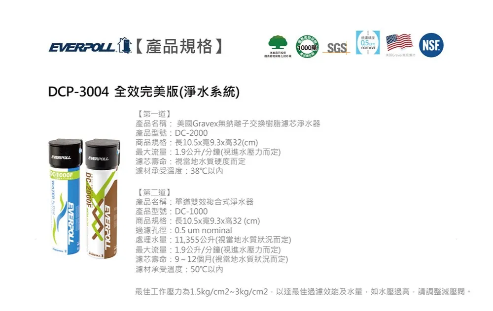 商品DC-1604R 軟水型中空絲膜淨水器