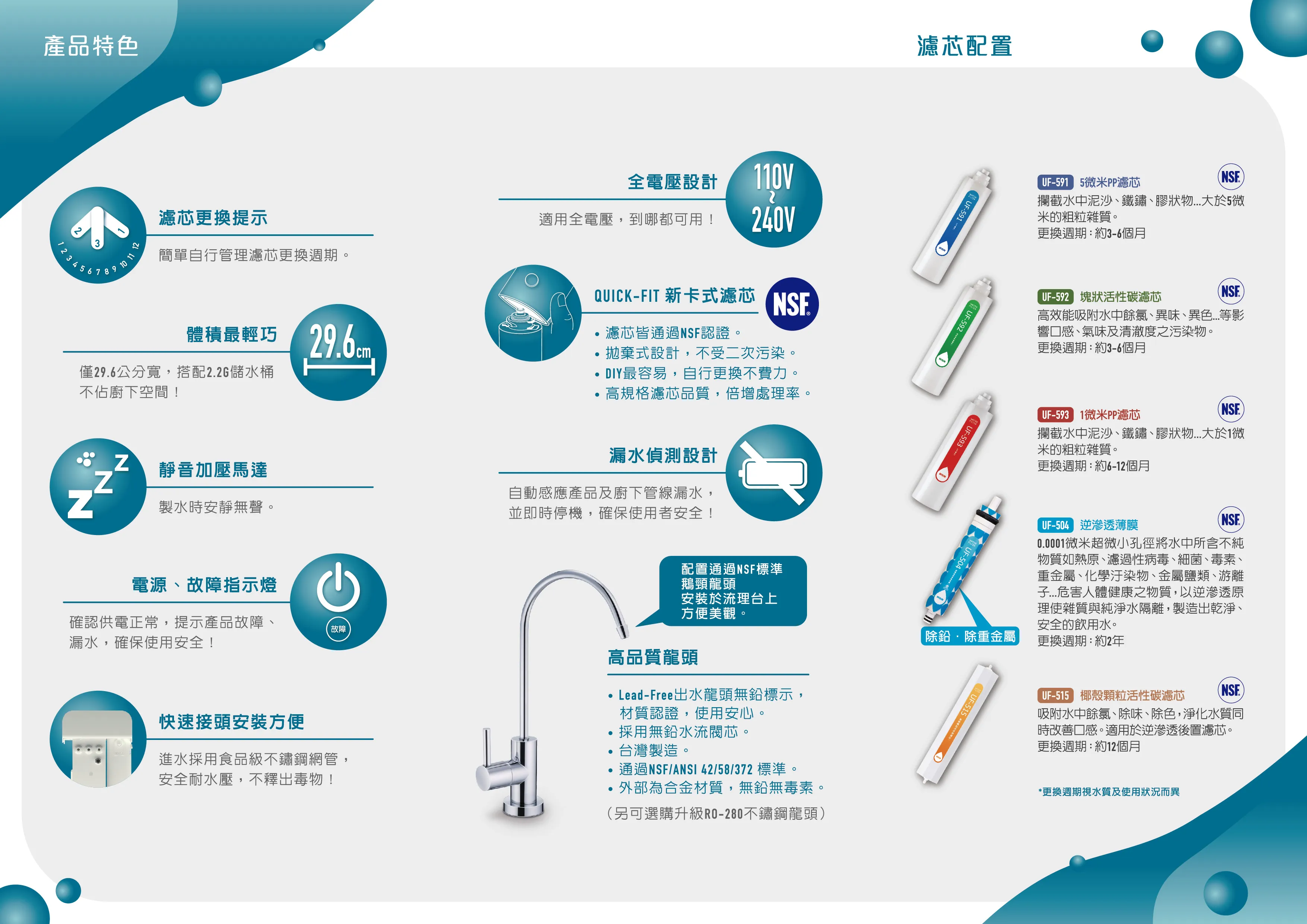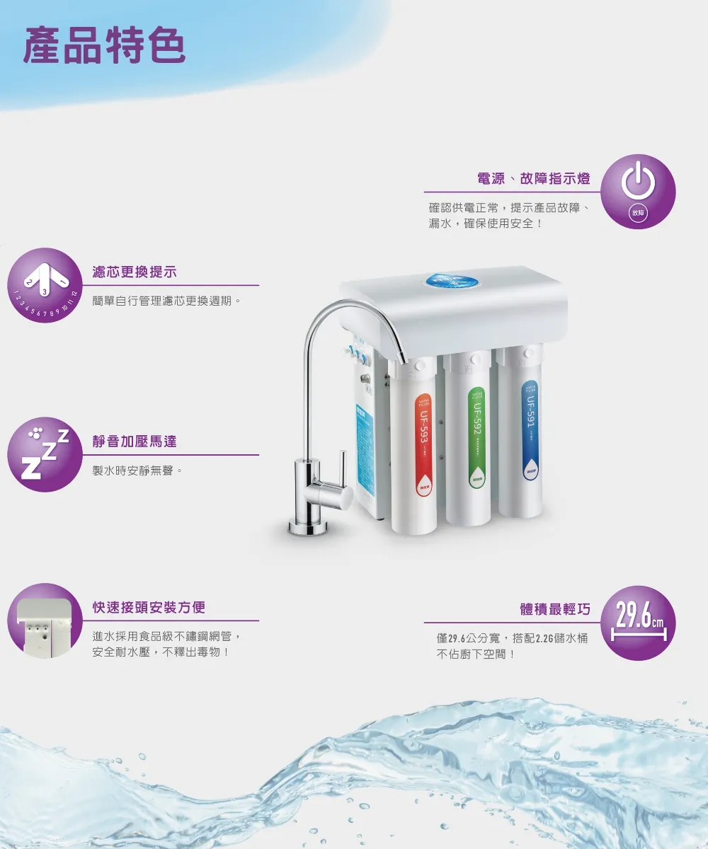 | 配件 | 儲水桶、台灣製造 NSF認證 無毒無鉛出水龍頭 | |