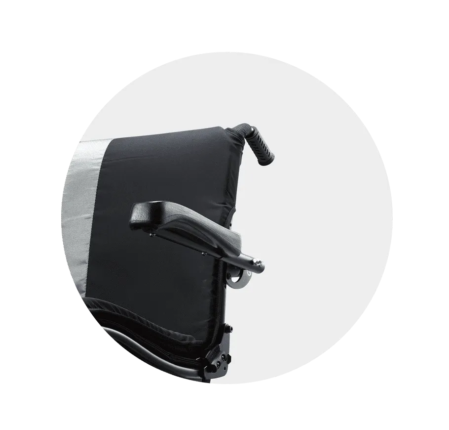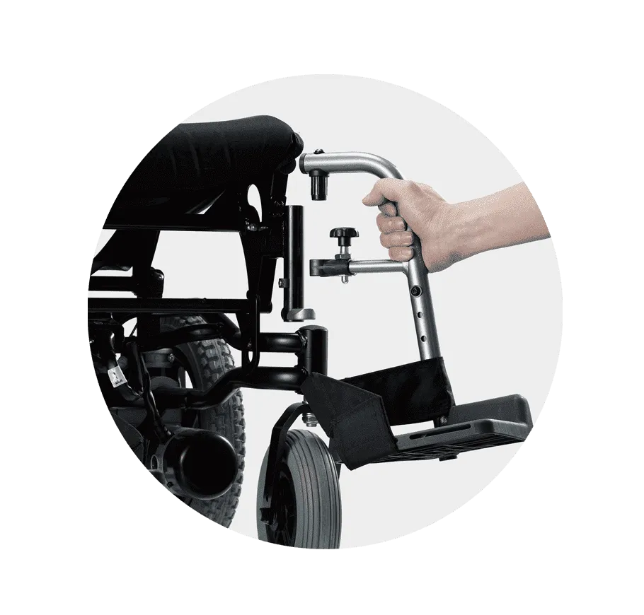 踏板可依據身型調整、可調整踏板高低,需要位移時可旋開撥腳,讓輪椅更靠近目的地,