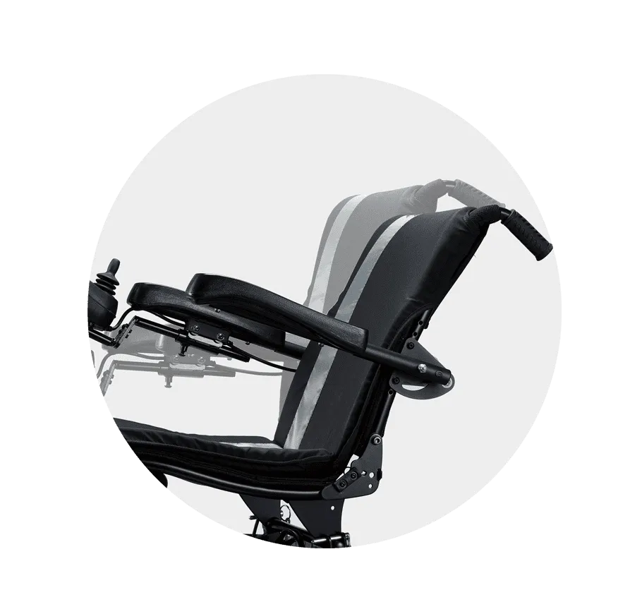 為了解決外出時無法輕易上車的問題,將電動輪椅輕鬆免工具快拆成三部份,方便拆卸攜帶、出門隨行。S曲面型人體工學座墊系統