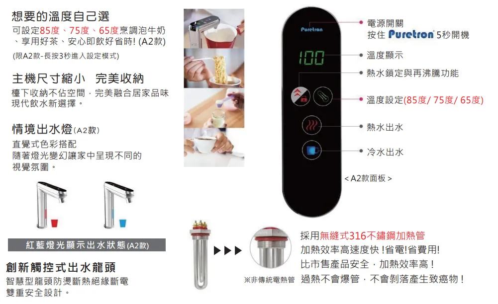 可設定85度、75度、65度烹調泡牛奶、享用好茶、安心即飲好省時!(A2款)