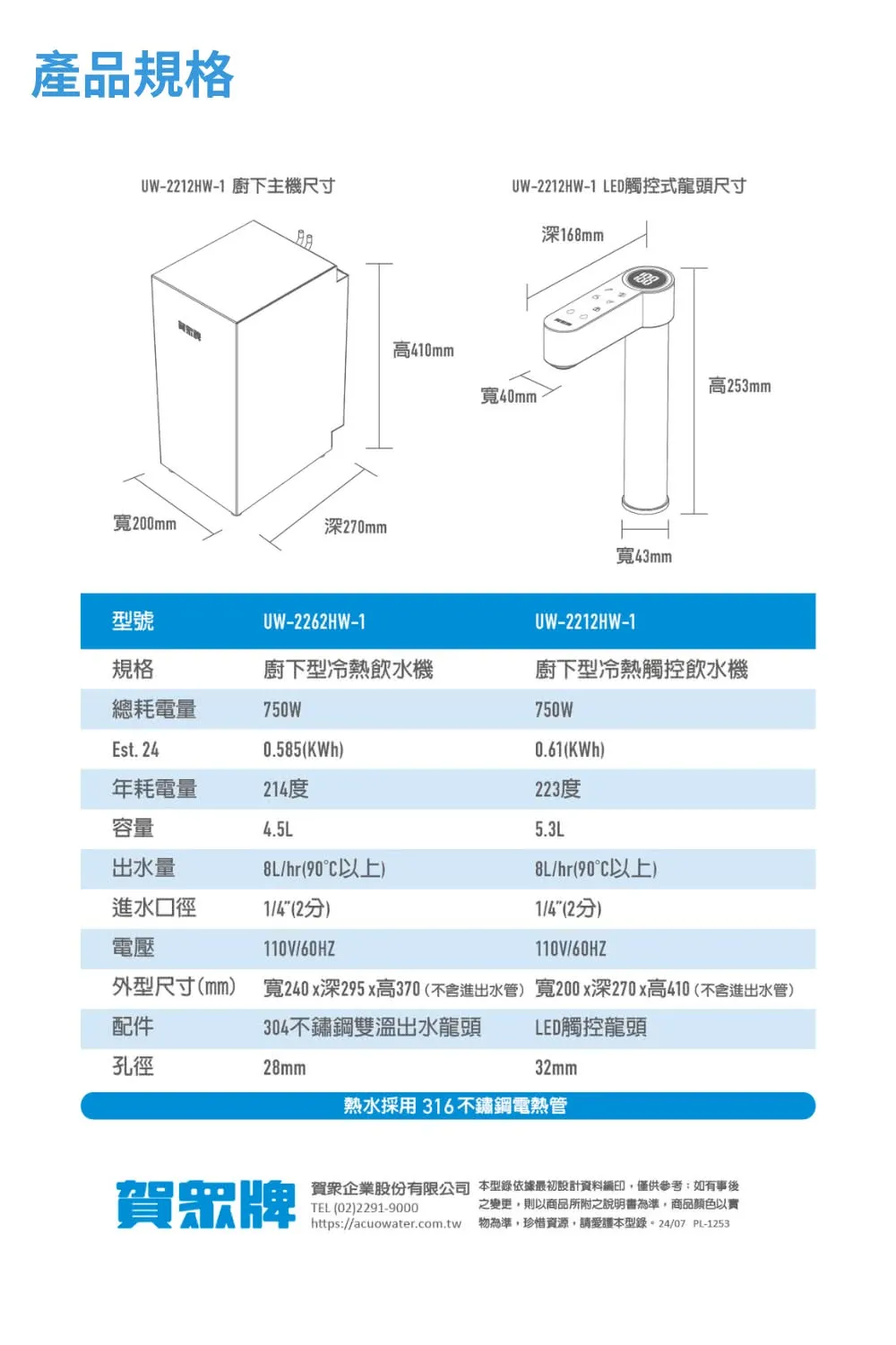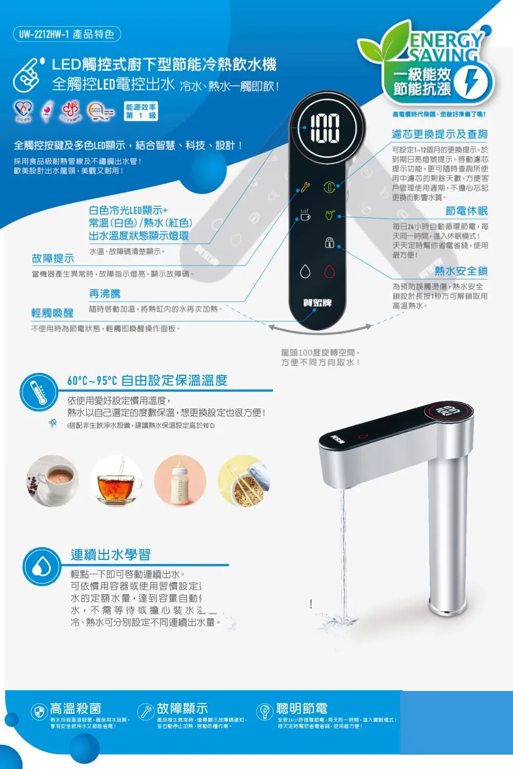 商品UW-2262HW-1 廚下型節能冷熱飲水機