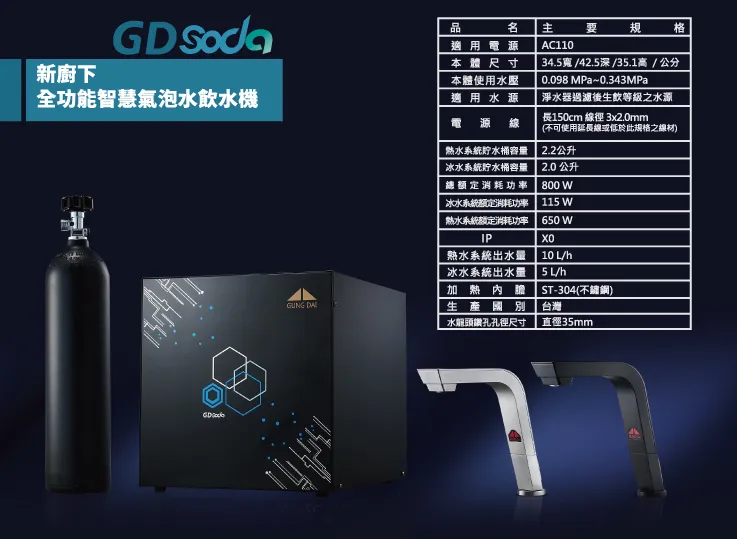 商品GDCROSSIII 新櫥下全智慧互動式三溫飲水機