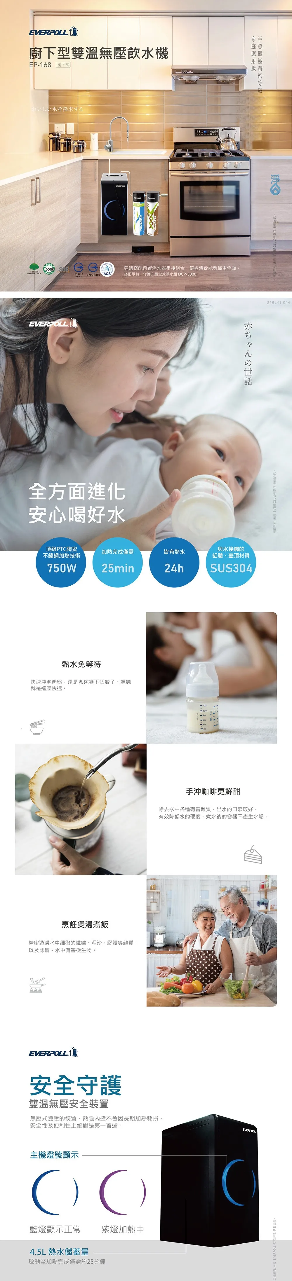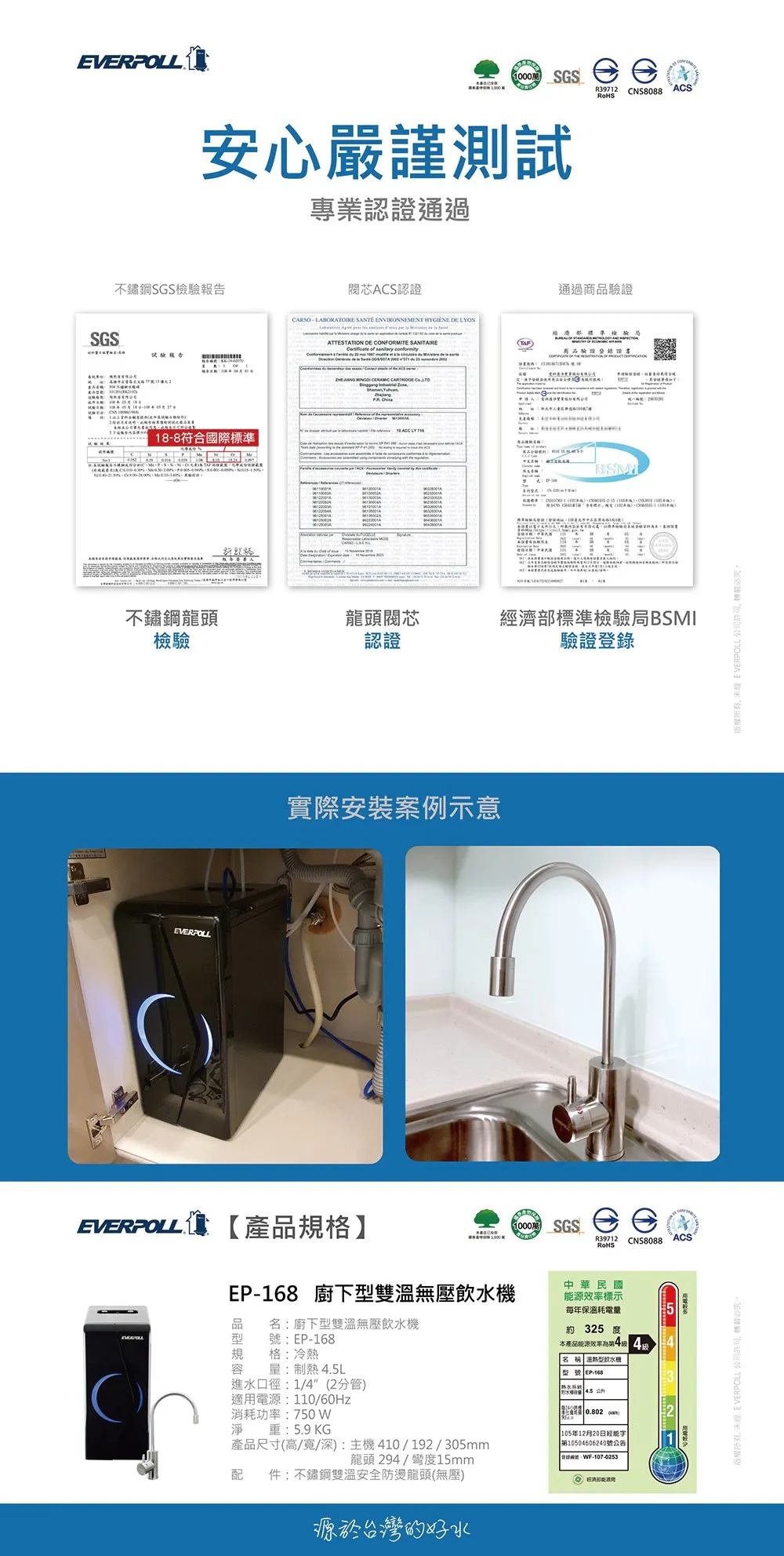商品EP-168 PLUS 廚下型調溫無壓飲水機(空機)