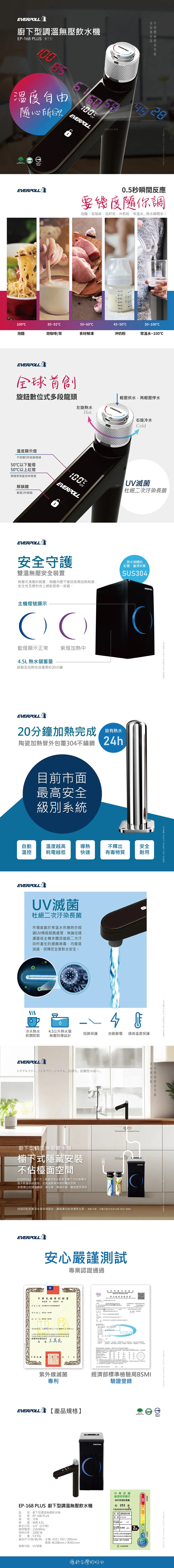 商品EP-168 廚下型雙溫無壓飲水機 (機械式不鏽鋼龍頭款空機) EP-168 廚下型雙溫無壓飲水機 (機械式不鏽鋼龍頭款空機)
