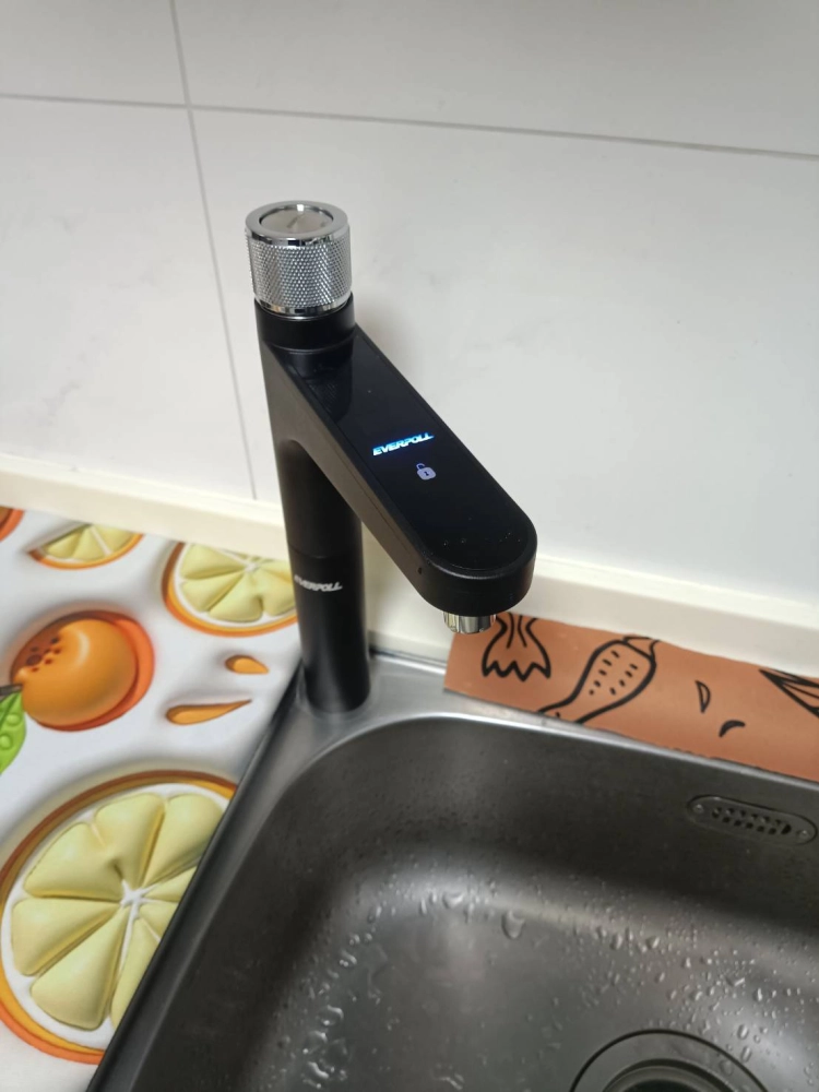 以輕壓方式即可供水與停水,旋鈕調整冷熱水;數位顯示溫度顯示燈,不按壓5秒自動熄滅,方便即時,反應快速。