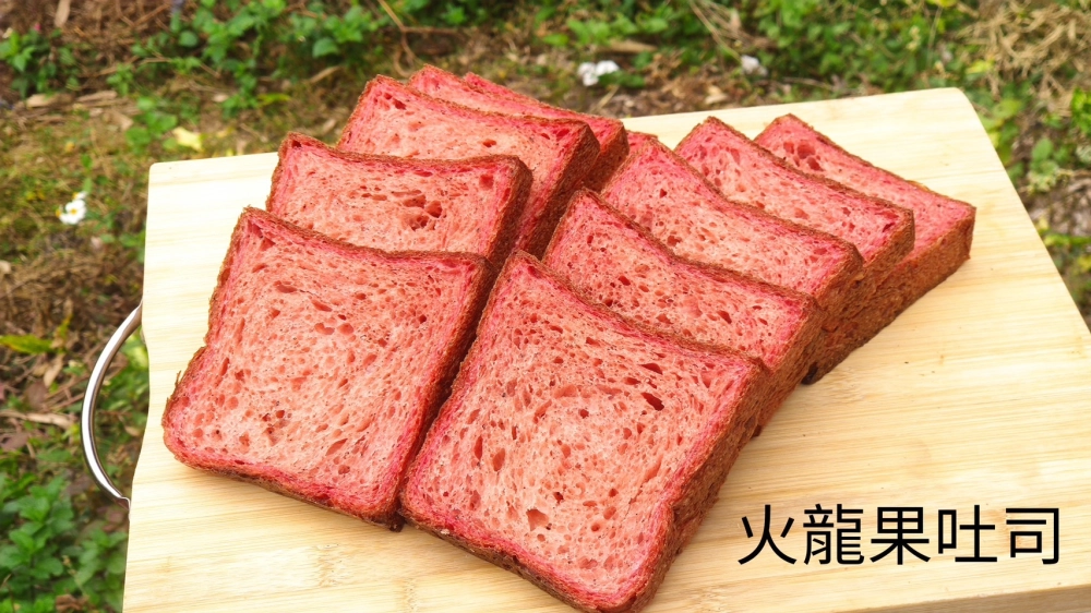 1. 不加水: 完全以新鮮火龍果汁揉合麵團,保留水果最完整的精華。