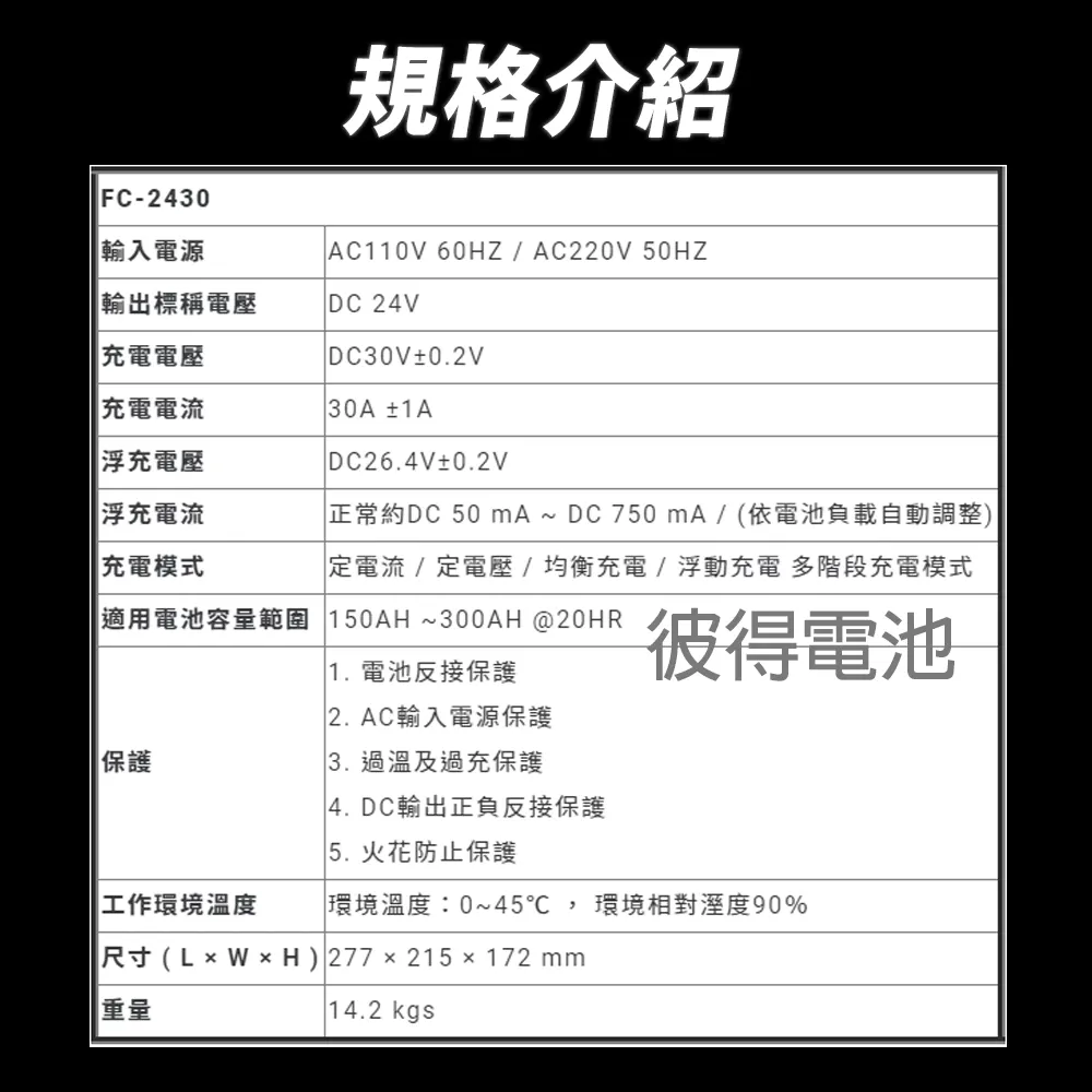 ■ 適用電池容量範圍:150AH ~250AH @20HR