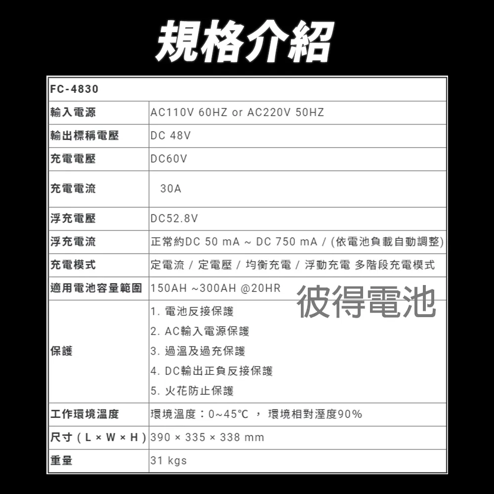 商品麻新電子 FC-4808 48V 8A 全自動鉛酸電池充電器 電瓶充電機 台灣製造 一年保固