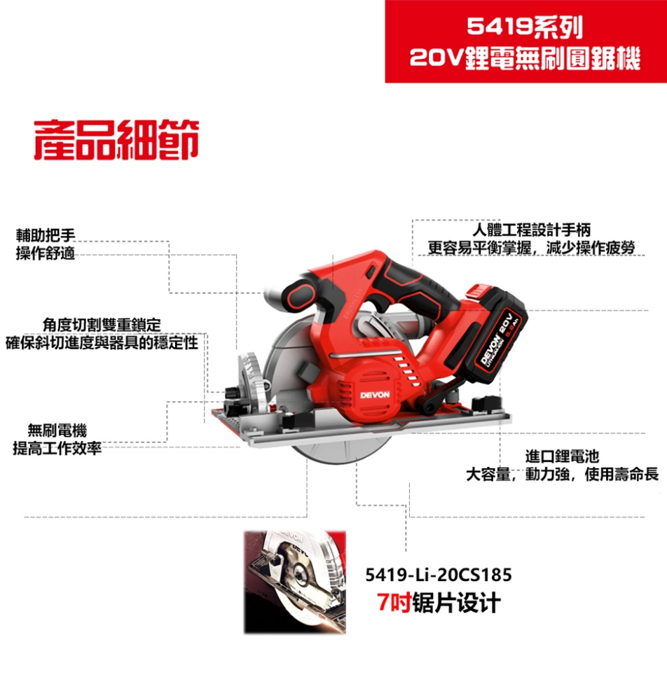 商品【飆破盤】DEVON大有 20V充電無刷軍刀鋸 5836-LI-20 木工 工程 電工 裝潢 無碳刷