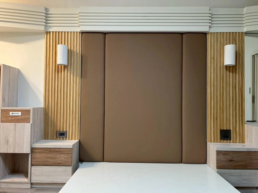 • 臥室:床邊臥榻增加使用彈性;或做繃布床頭板,提升靠坐舒適度與質感。