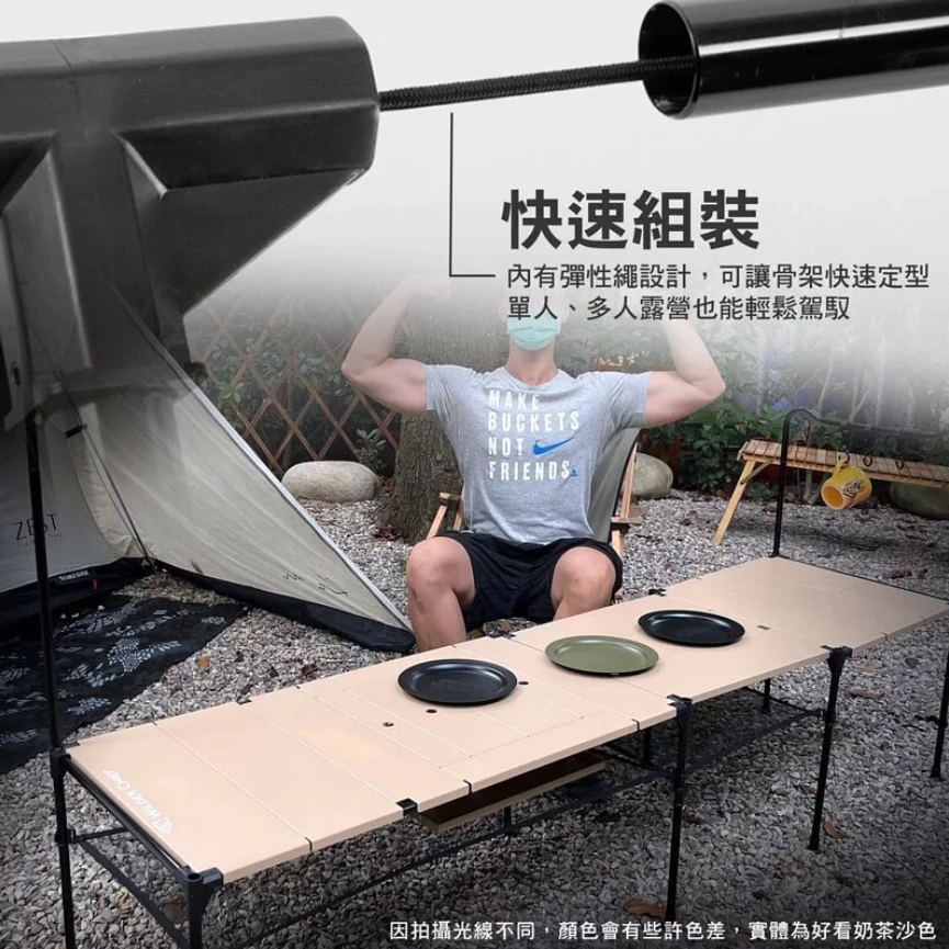 ◾組裝露營桌不再滿身大汗了,戰術積木桌彈力繩設計快速安裝讓你露營更輕鬆