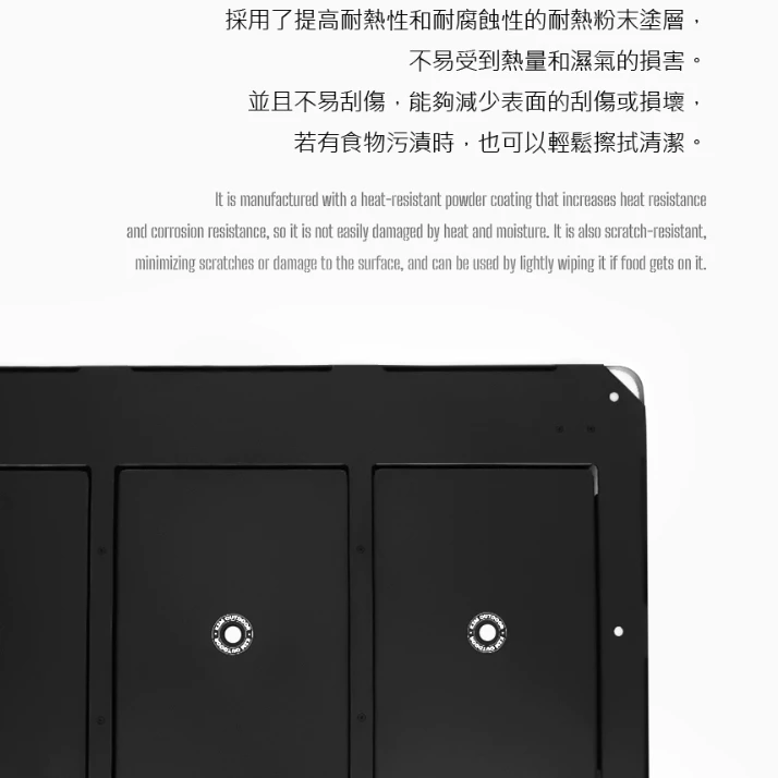 🔹採用了提高耐熱性和耐腐蝕性的耐熱粉末塗層,不易受到熱量和濕氣的損害,並且不易刮傷,能夠減少表面的刮傷或損壞