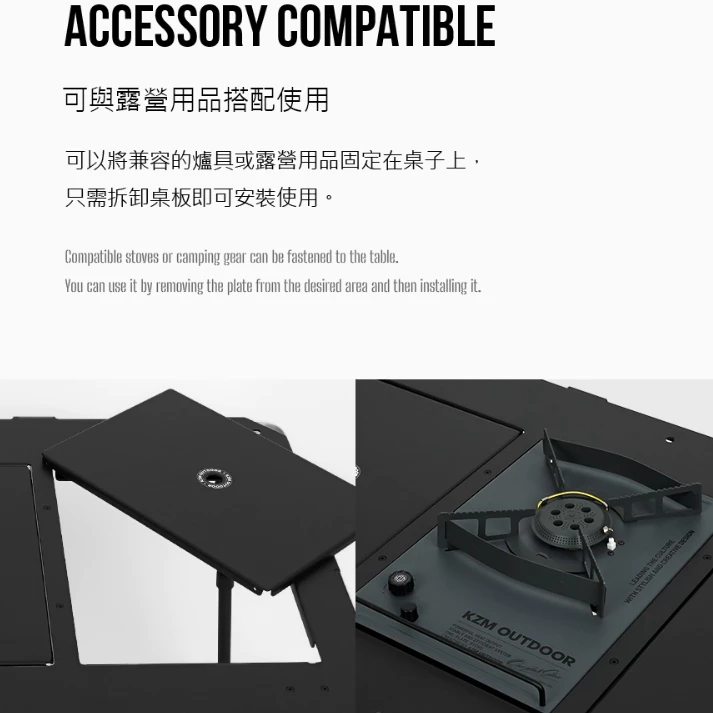 🔹可以將兼容的爐具或露營用品固定在桌子上,只需拆卸桌板即可安裝使用