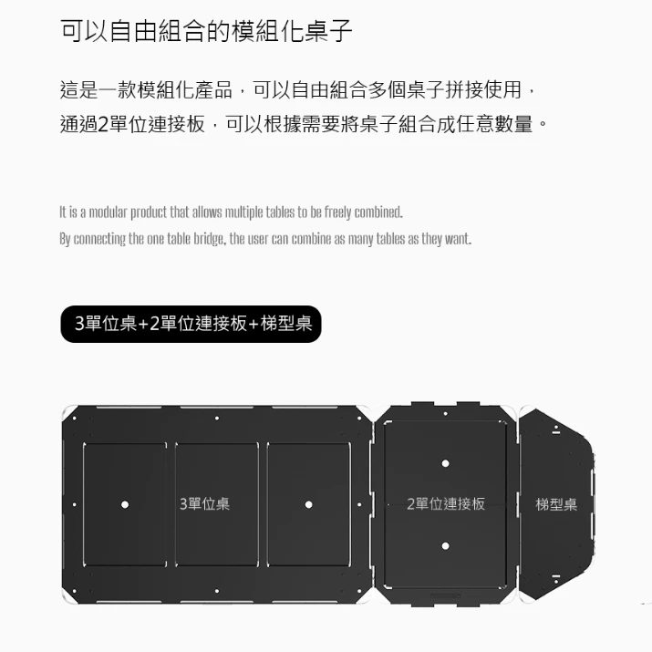 🔹桌面由3個IGT桌板組成,可以根據情況進行各種組合和使用