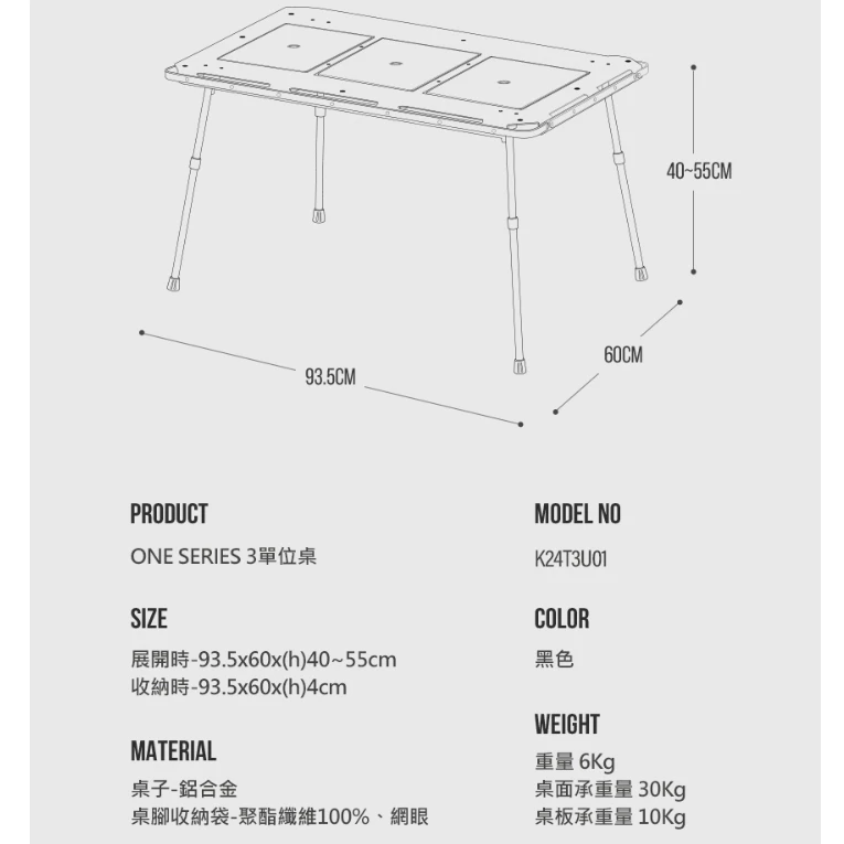 KZM ONE SERIES 3單位桌【綠色工場】kazmi IGT單位桌 露營桌 鋁合金桌 黑化 可拼接桌 韓國選物