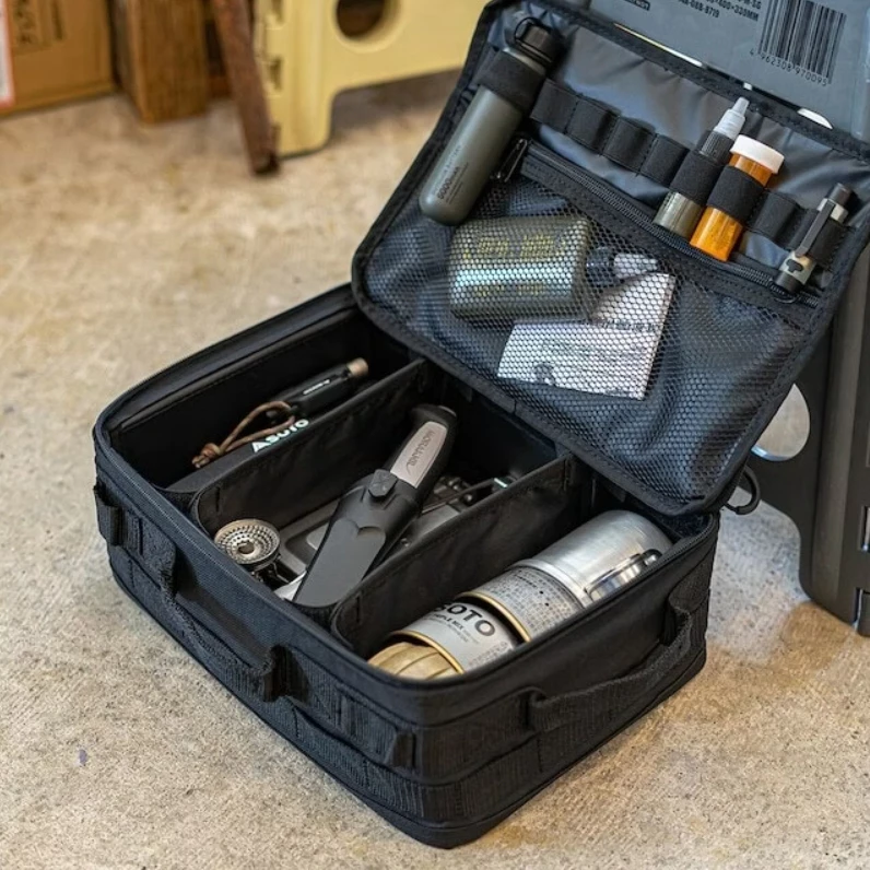 🔹內附有兩塊隔板,靈活變化空間大小,還有網格口袋,方便收納小零件