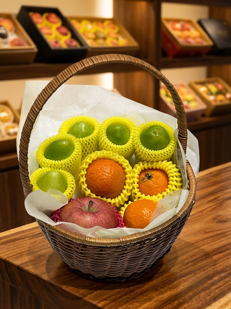 整體搭配清爽討喜,兼具質感與實用性,是送禮自用都合適的水果禮籃選擇。
