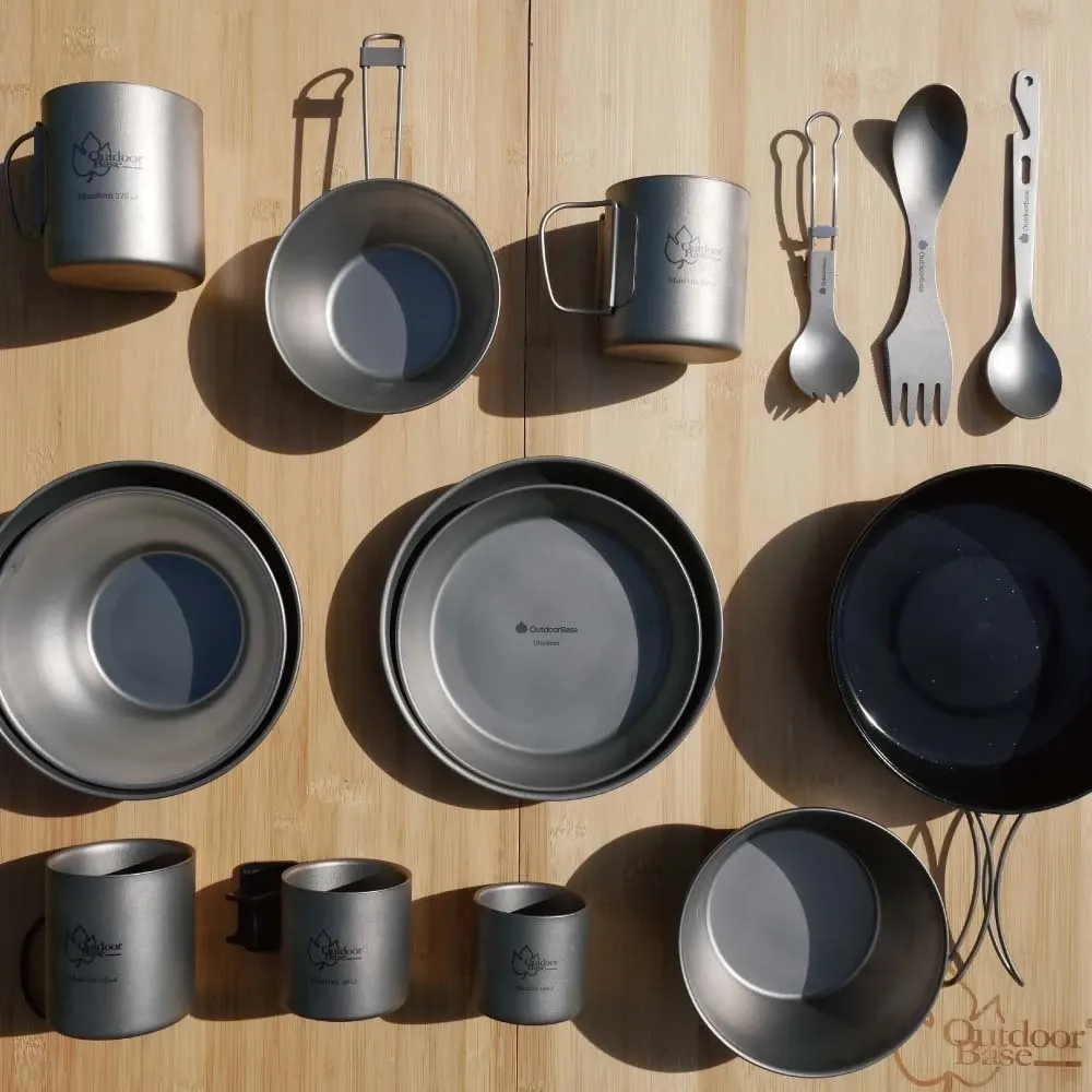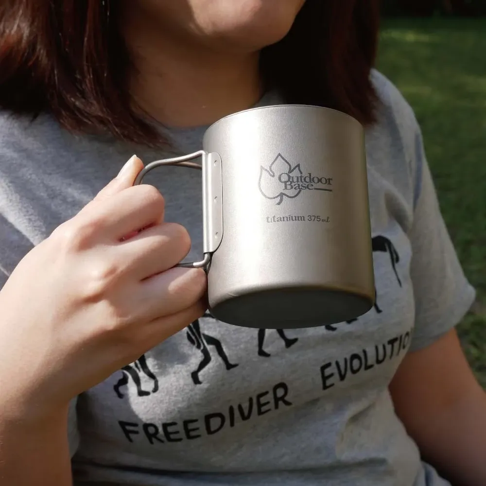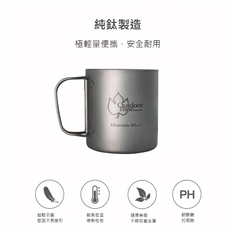 OutdoorBase 野夫炊煙純鈦雙層隨行杯【綠色工場】鈦杯 隔熱杯 水杯 鈦馬克杯 鈦金屬 露營杯