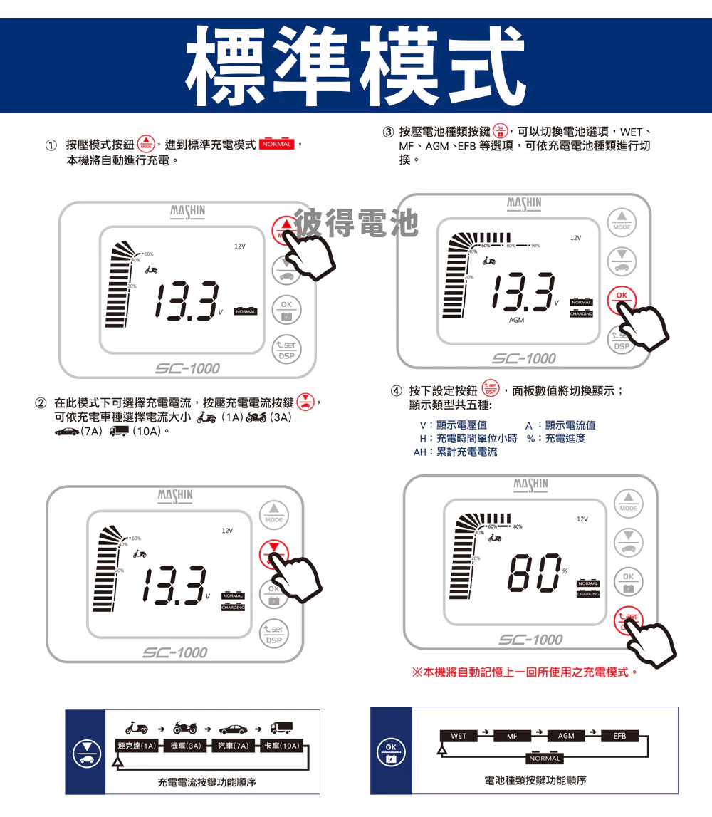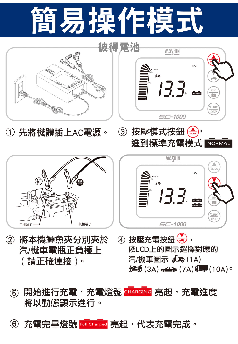商品麻新電子SC-1000、SC-1000+、SC-1000S脈衝式電瓶充電器 電瓶充電機 一年保固