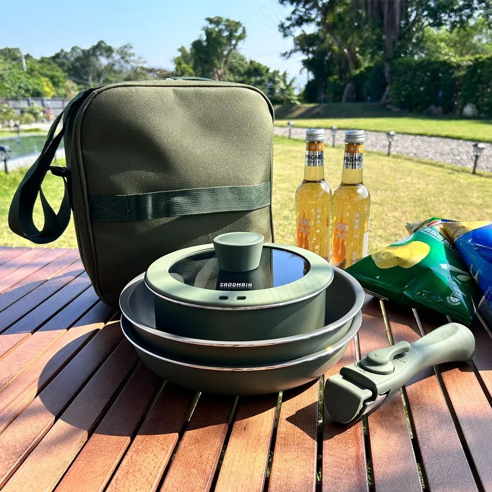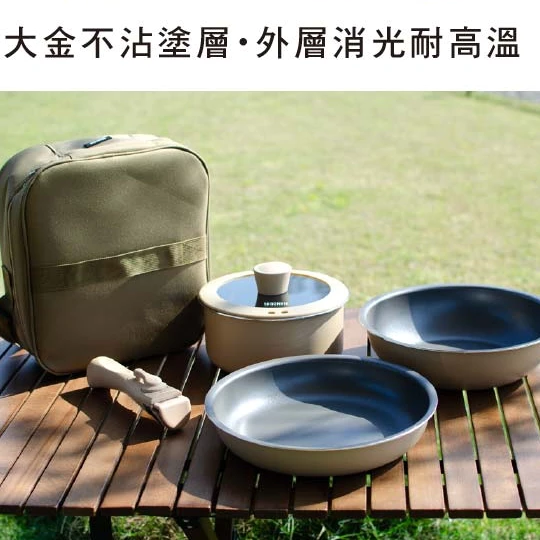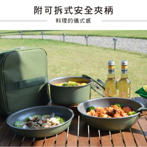 仙德曼 日本Daikin 露營鍋具組【綠色工場】Sadomain 24cm不沾鍋 AG024 平底鍋 湯鍋 附收納袋