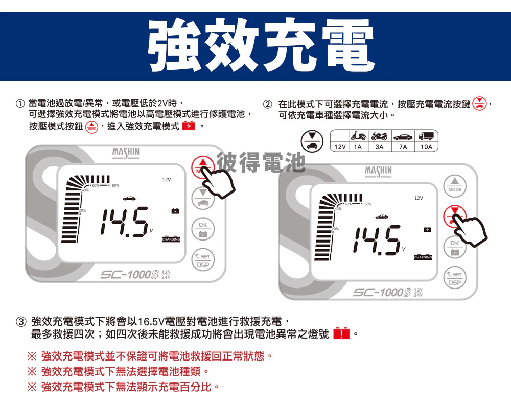 ■ 脈衝電流電池激活模式(可延長電池壽命&保養電池&提高電池使用效率)