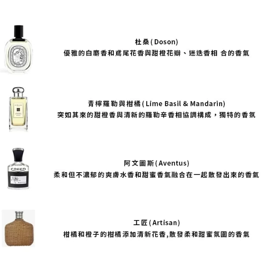 🔹Artisan:柑橘和橙子的柑橘添加清新花香,散發柔和甜蜜氛圍的香氣