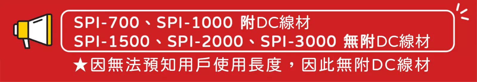 注意:因無法預知用戶長度, 因此無附DC線材。
