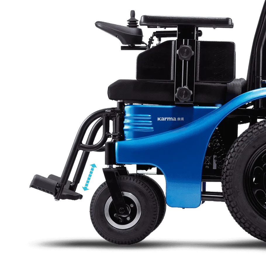 需要位移時可旋開撥腳,讓輪椅更靠近目的地,方便進出。踏板高低可調整