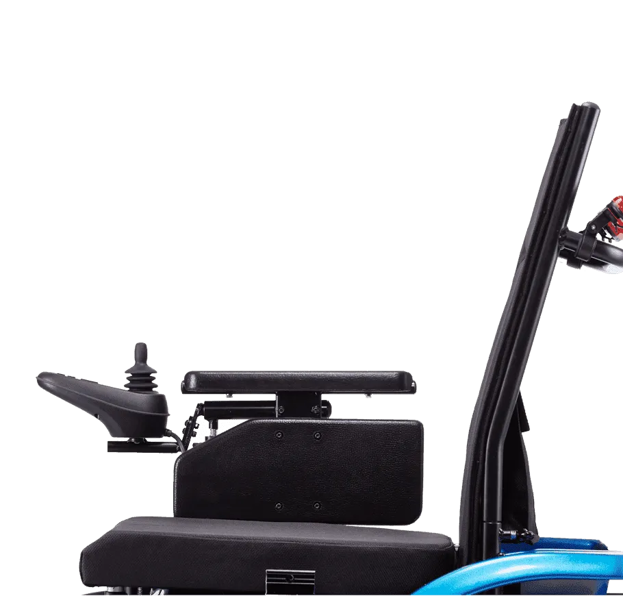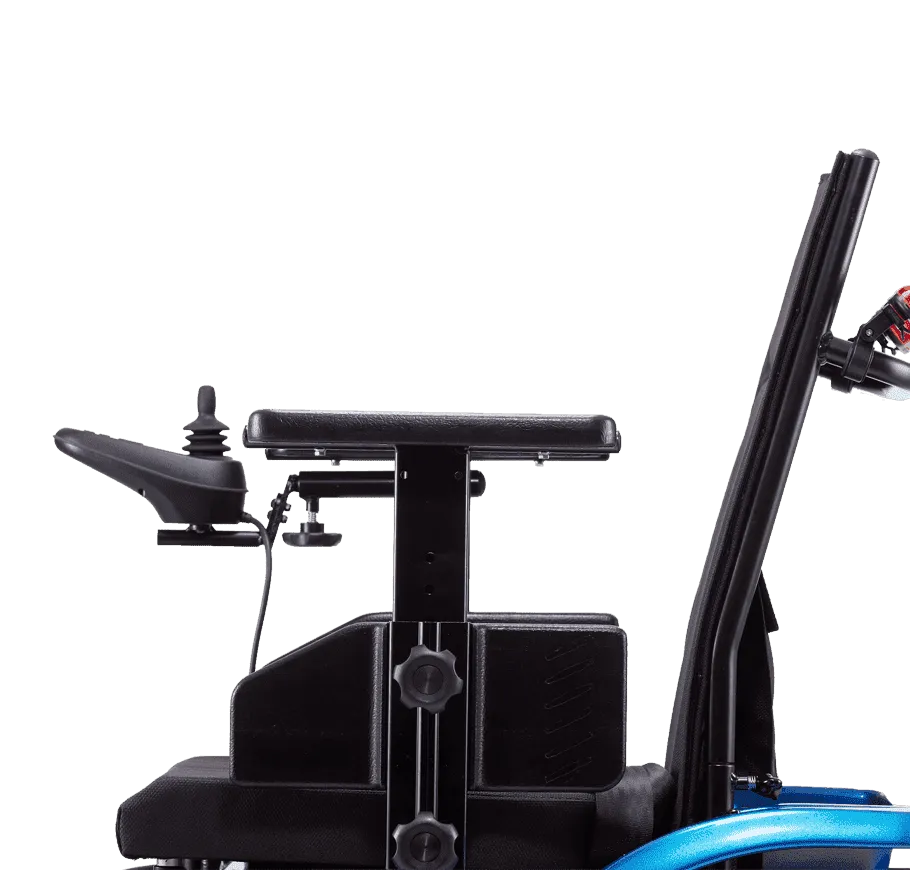 搭載四輪獨立避震設計,五段可調避震系統,調出適合行駛的舒適度。標配38km續航,也可選配鋰鐵電池,續航再進化可達54公里。適配扶手