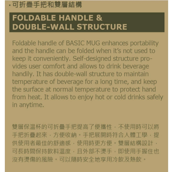 ◾雙層結構設計,可長時間保持飲料溫度,且外部不燙手,隨時安全地享用冷飲及熱飲