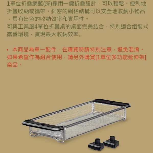 ◾0.5單位網籃(淺)可以單獨使用,也可以與組合式吊掛架(小)結合使用。