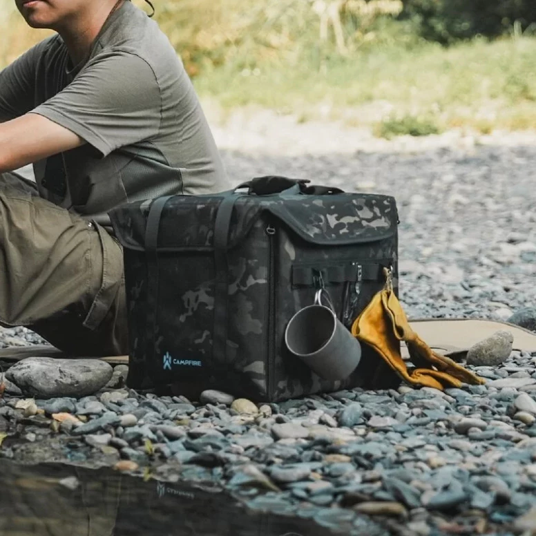 ◾露營達人打造|一物多用,收納包可展開成地墊化身為工作區