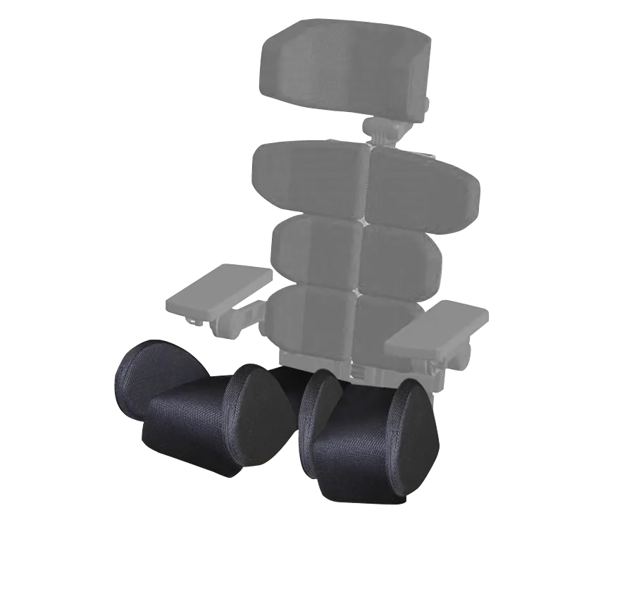 座椅設計確保使用者的雙腿可自然外展,擴大骨盆的支撐基礎並增加髖關節的穩定度,幫助兒童獲得最適當的坐姿。座椅組合泡棉