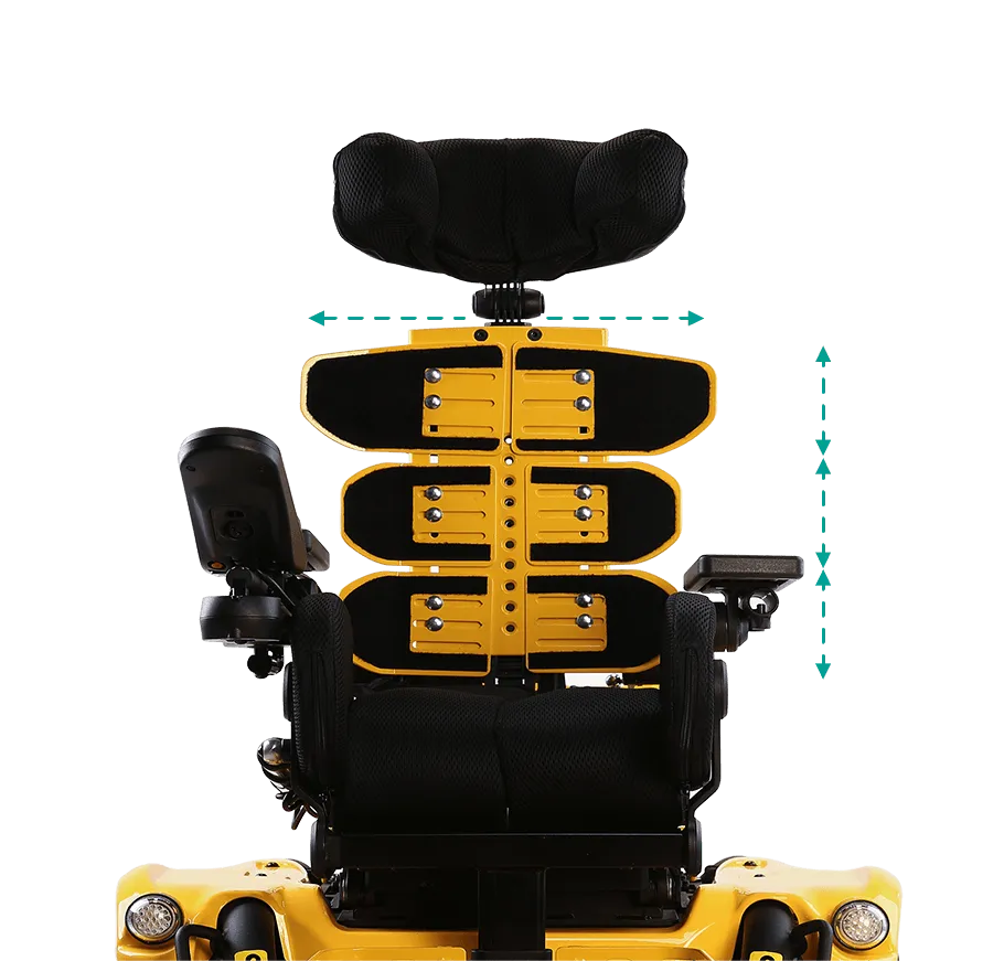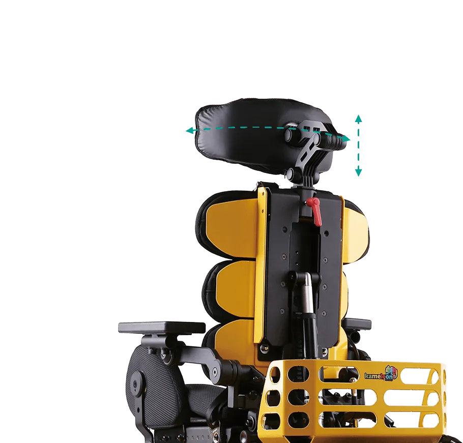 頭靠高度、角度和曲線可調,幫助降低頭部和脖子壓力。可添加組件擴展頭靠尺寸大小。可在座椅靠背上裝置軌道介面,進行水平調整頭靠位置。穩姿座椅設計
