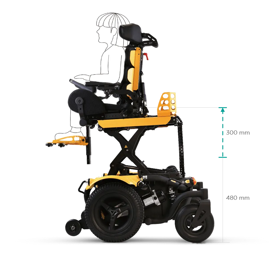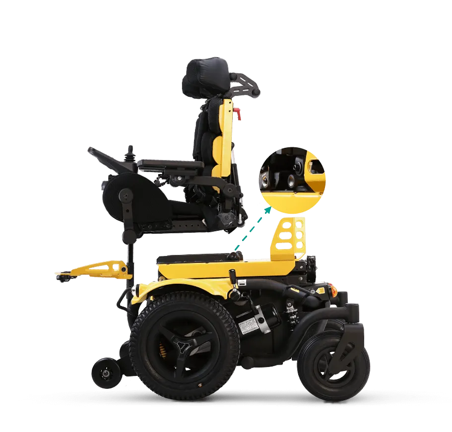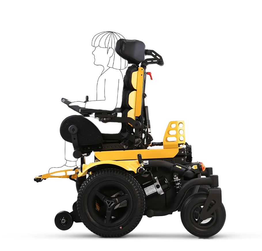 選配搭載 Tilt-in-space 空中傾倒系統,孩子可以輕鬆地改變坐姿位置,從而將壓力由臀部分散至背部,或將臀部壓力分散至背部,放鬆坐壓,即時釋放臀部壓力,此功能有助於預防壓傷(壓瘡)發生的風險並避免背部疼痛。還有助於在下坡行駛時保持穩定性,使行駛更加安全和舒適。