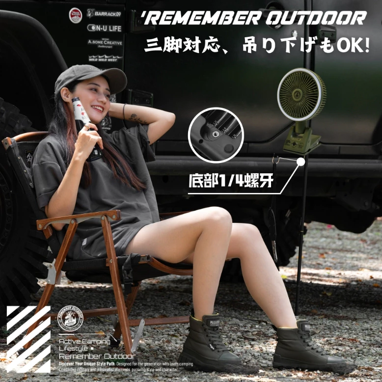 1/4 標準螺牙,可搭配 三腳架、掛鉤、延伸支架,輕鬆打造個人專屬涼感角度。