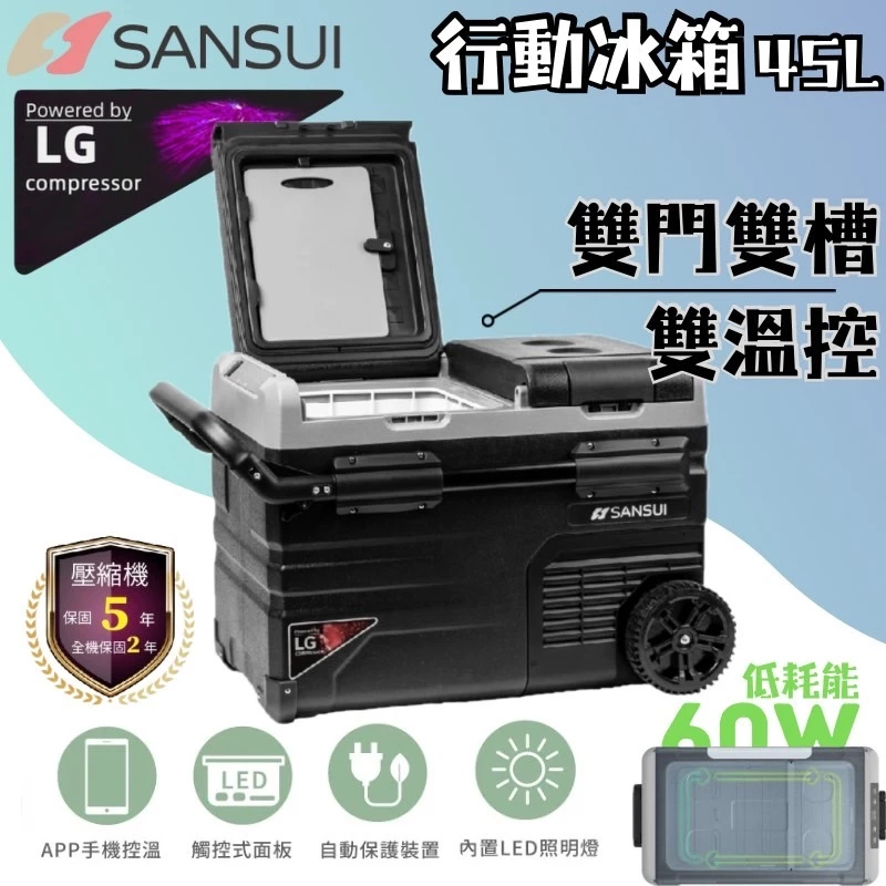 山水 APP控溫行動冰箱45公升【綠色工場】SL-G45N LG壓縮機 (移動冰箱/拉桿冰箱/車用冰箱/露營冰箱)