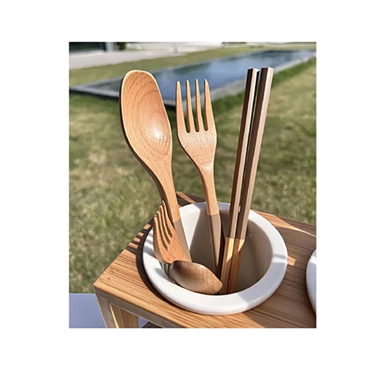 【天然材質】 餐具皆採天然山毛櫸原木一體製作
