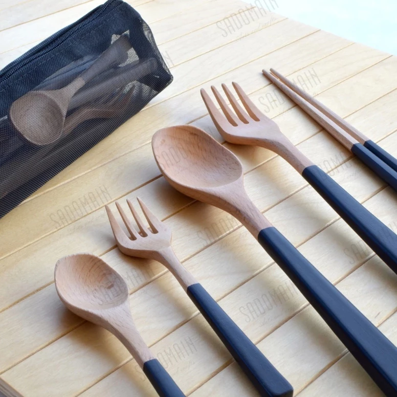 SADOMAIN 仙德曼 露營原木餐具組【綠色工場】露營餐具 湯匙 筷子 叉子 環保餐具 2套入 WG002 附收納袋