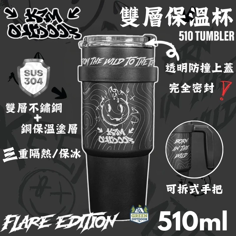 KZM 個性塗鴉雙層保溫杯【綠色工場】kazmi 冰壩杯 510ml 不鏽鋼杯 隔熱杯 保溫杯 水杯 手持杯