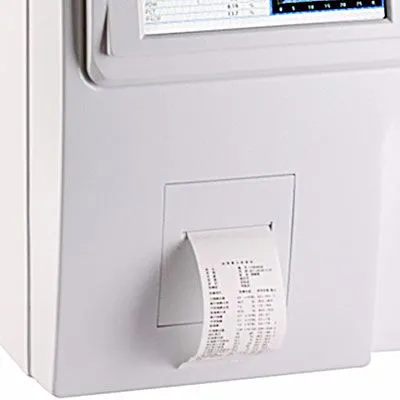 | Printout | Print out five types of printed report sheets with normal value ranges, built-in thermal printer, and can be connected to an external printer |