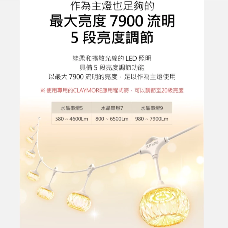 CLAYMORE CADENA 7 水晶串燈 星光旗艦組【綠色工場】露營燈 氣氛燈 露營裝飾燈 串燈 照明燈