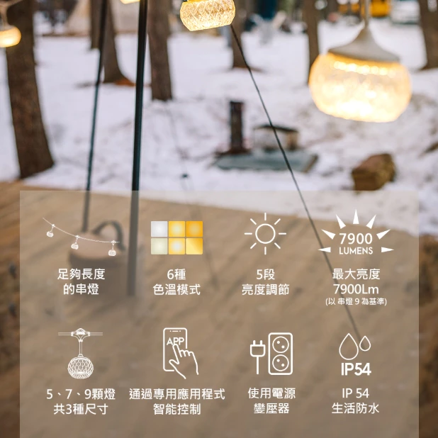 內容物:串燈x1、水晶燈罩x7、變壓器x1、收納袋x1