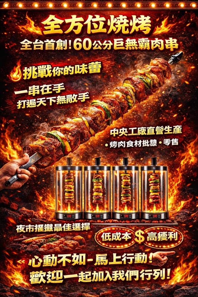 • 6/12-6/15台北世貿加盟展台灣首創60公分巨無霸肉串