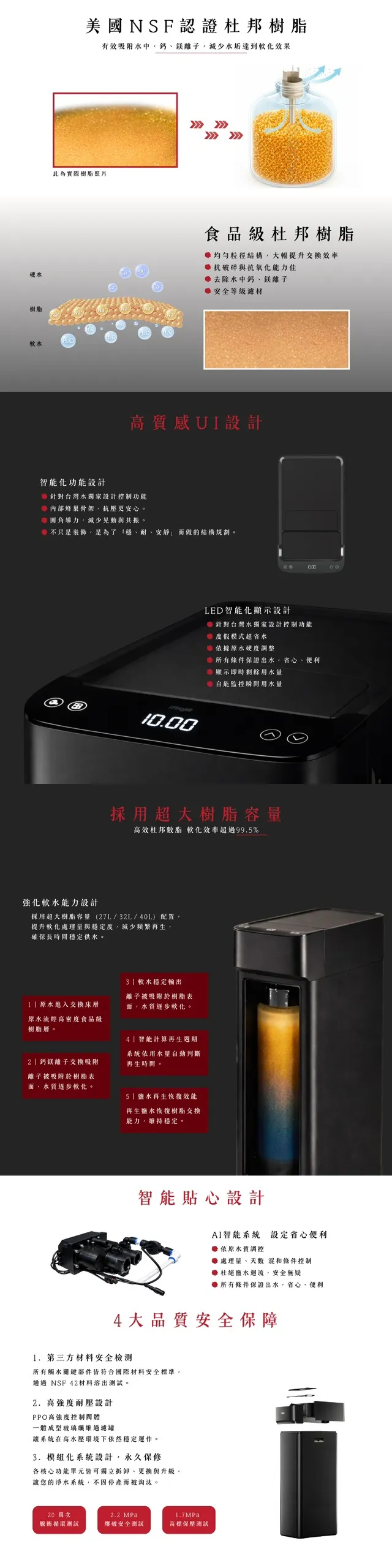 ✅採用超大樹脂容量(27L/32L/40L)配置,